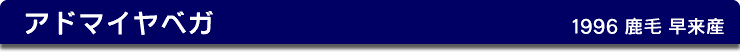 母は2冠牝馬ベガ。半弟のアドマイヤドンはGI・7勝馬となり、全弟アドマイヤドンもセントライト記念(GII)を勝ち種牡馬入り。アドマイヤスバルを出すなどまずまずの成績を残している。5代母Amoretの子孫に桜花賞馬シャダイソフィアがいる、社台グループとは縁の深い牝系。 |