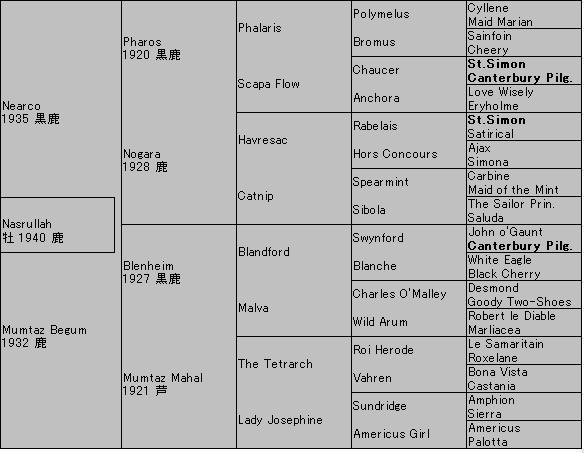 後継種牡馬の Nasrullah(1940年生)は、母系から受け継いだスピードによって、ややスタミナに傾きかけたこの系統を再びスピード路線に引き戻した。父 Nearco は9.78で、Nasrullah は8.84である。同じ Nearco 産駒で4分の3同血にあたる Royal Charger に比べると距離的な融通性があり、底力に秀でていた。Nasrullah は、19世紀のプリアム Priam 以来113年ぶりにイギリスとアメリカの双方でリーディング・サイアーとなった。そのサイアー・ラインはやがて世界中に広まっていった。